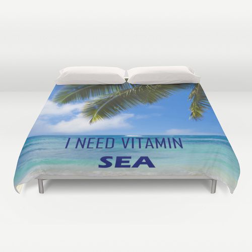 Duvet cover “I need vitamin Sea” with palm leaves over ocean #duvet #duvetcover #beachlovedecor #ocean #palm ← Previous Next →