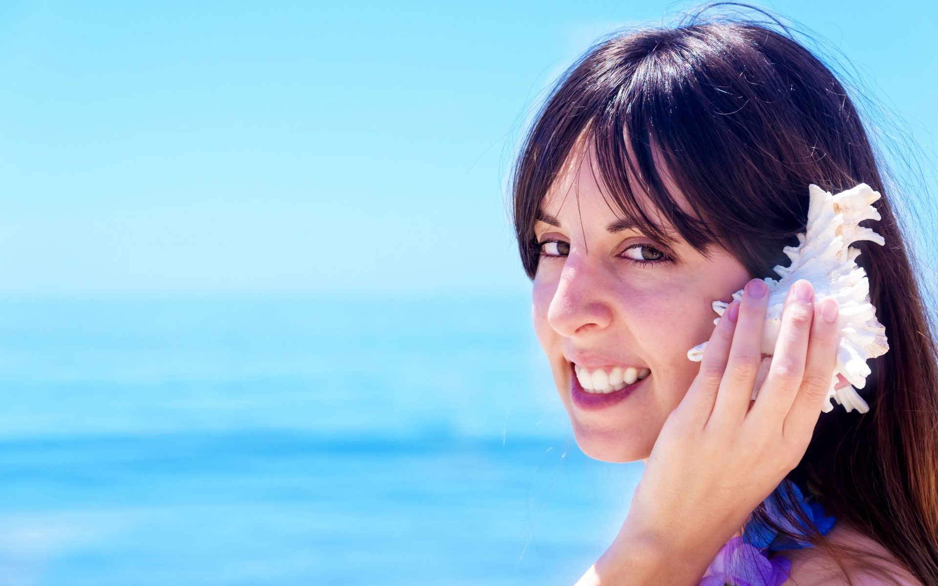 Beautiful yang Girl with seashell by the ocean