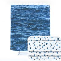 Blue ocean bath set 11, Microfiber sea foam bath mat, ocean shower curtain, deep blue ocean collection