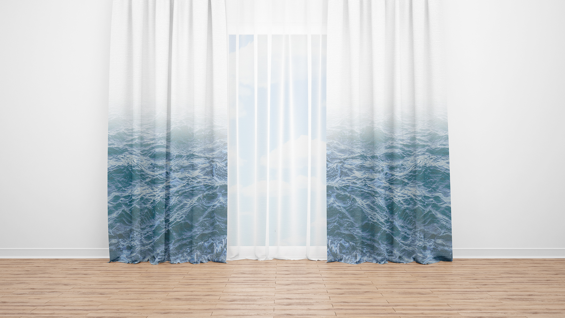 White and Ocean window curtain 4 – light blue